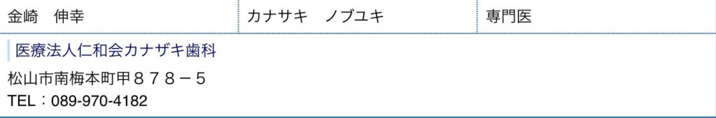 以下は、今回ご紹介する歯科医院の1つである「カナザキ歯科」の金崎先生の資格情報です。