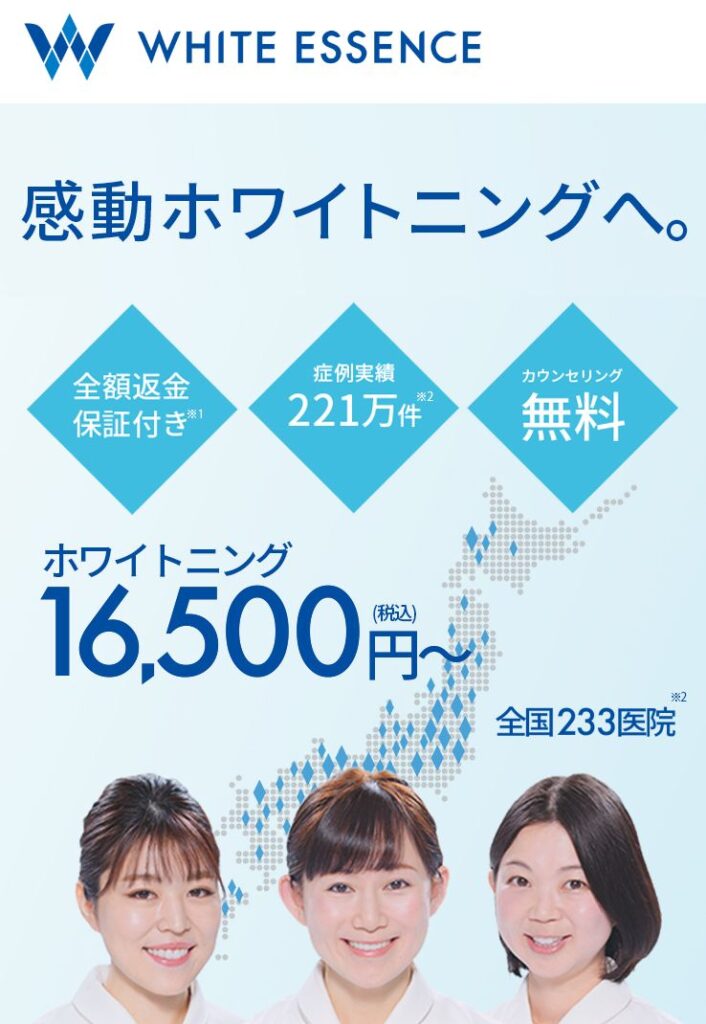 ホワイトエッセンスは、全国に233医院、症例実績は286万件あるホワイトニングクリニックです。(※2)