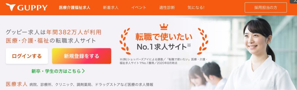GUPPY(グッピー)は、医療職向け求人サイトです。
