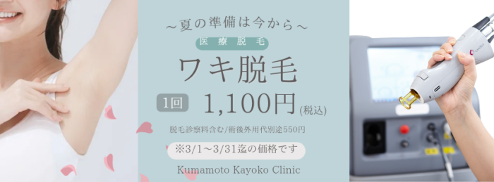 かよこクリニックでは、お一人おひとりのお肌の状態にあわせて治療のご提案をさせていただきます。◇◆◇ 3月のいちおし美容『医療脱毛*ワキ脱毛』◇◆◇
